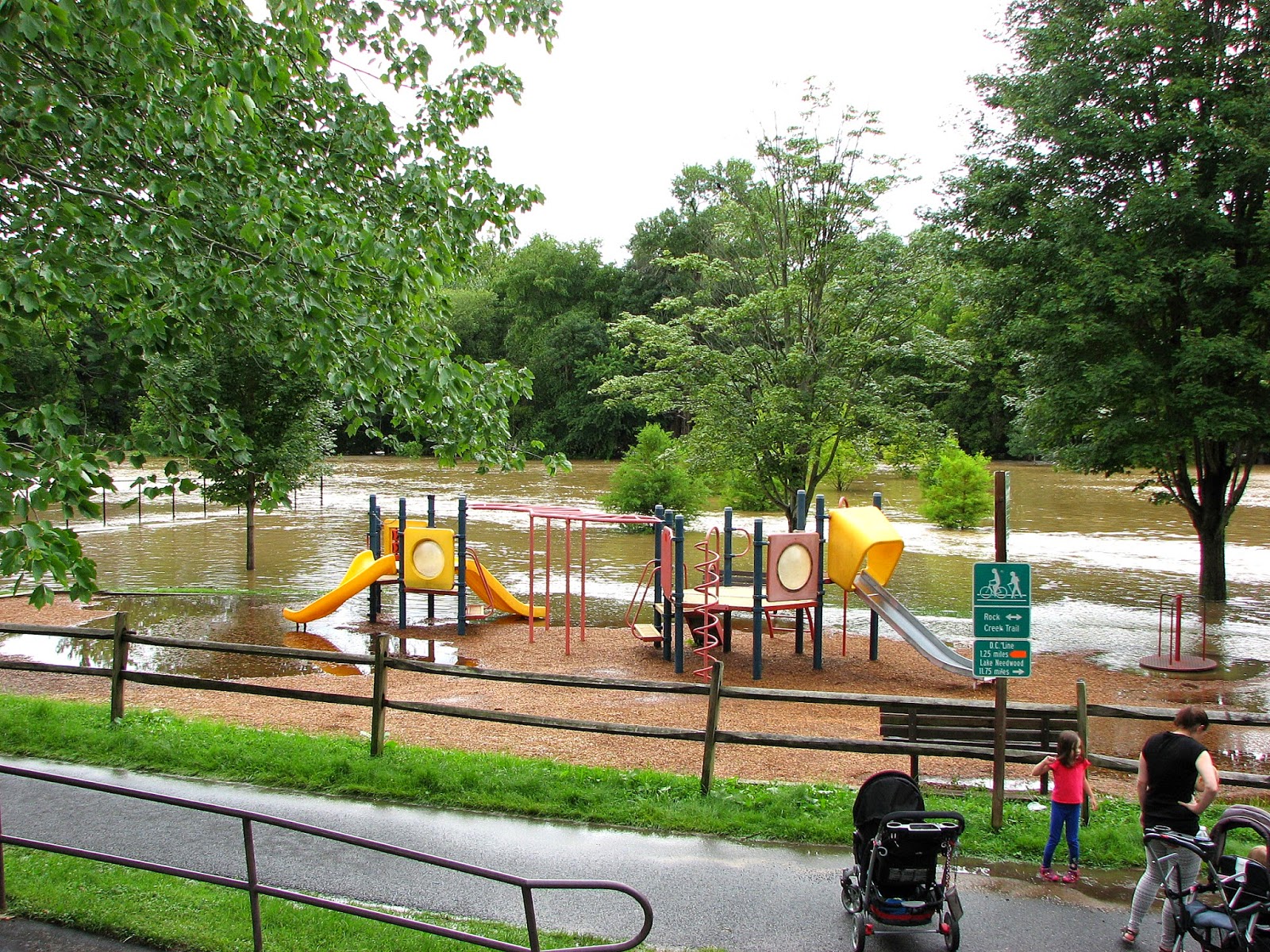 Rock Creek, the source of the flood waters, is beyond the far trees. Those are football/soccer fields in the middle.